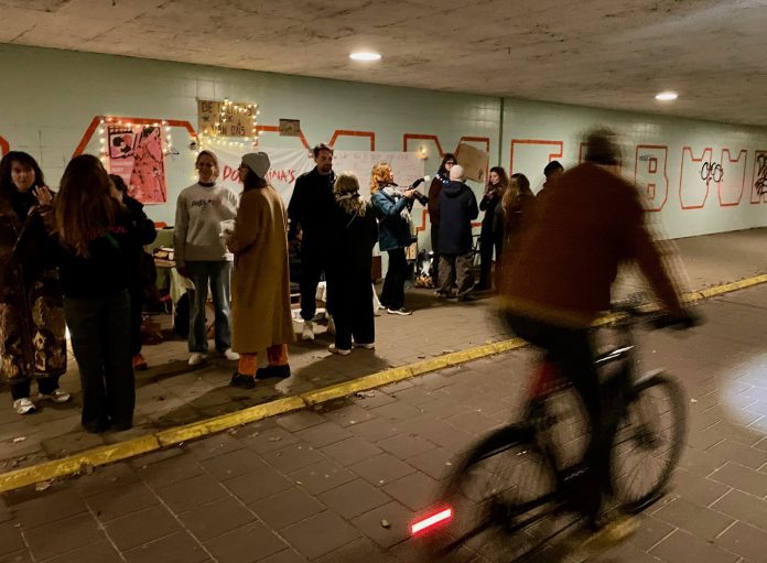 De tunnel tussen het Westerpark en de Spaarndammerbuurt is zondagavond voor even omgetoverd in een woonkamer, met vloerkleden, stoelen en lichtjes. Met deze actie vraagt Dolle Mina Amsterdam om meer veiligheid op straat. Dit met de slogan ‘Vanavond hoeft niemand een omweg te nemen’.