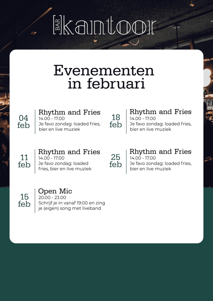 Bij Bar Kantoor, oftewel ‘het gezelligste kantoor van Amsterdam’, is verveling verleden tijd. Dit uitnodigende restaurant in het Westerpark heeft in februari weer geweldige events met live muziek op het programma staan.