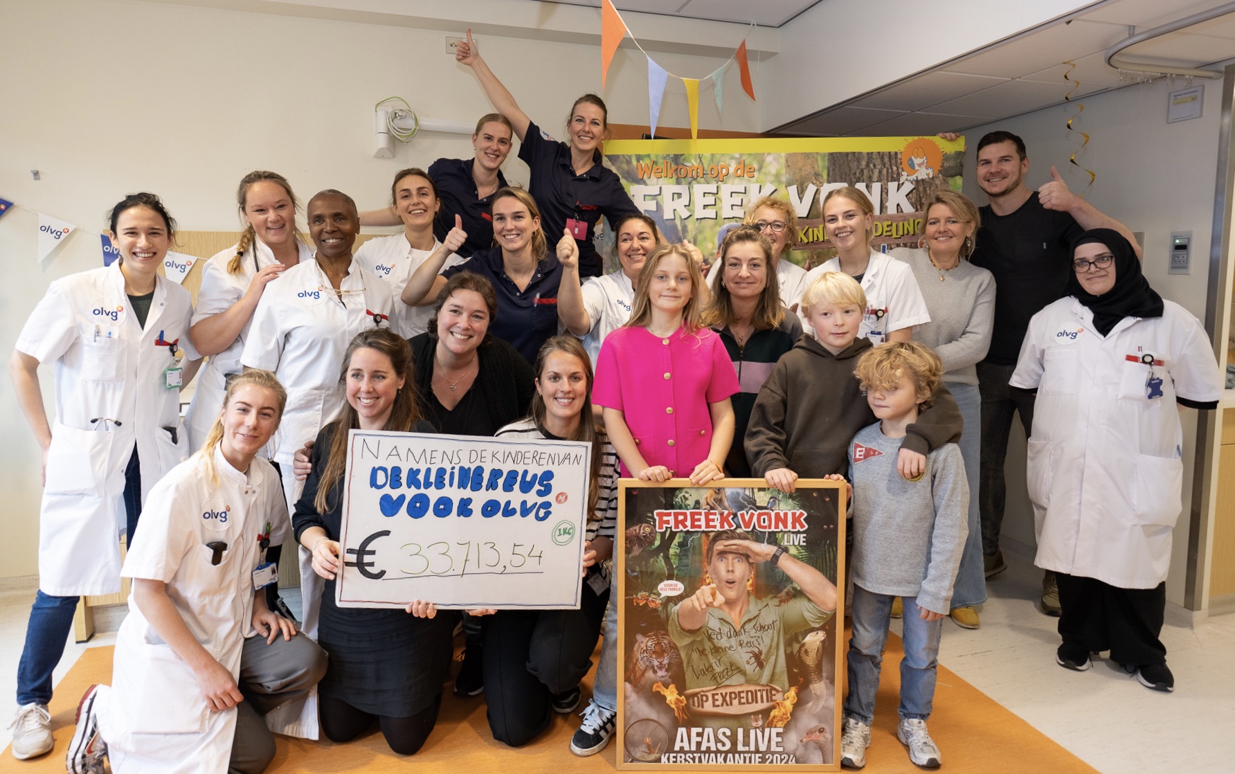 Leerlingen van de Amsterdamse basisschool De Kleine Reus hebben met een sponsorloop 33.713 euro opgehaald voor de kinderafdeling van OLVG locatie West. Met dit bedrag is het omtoveren van de kinderafdeling tot een waar Freek Vonk-jungleparadijs een stapje dichterbij, aldus OLVG.
