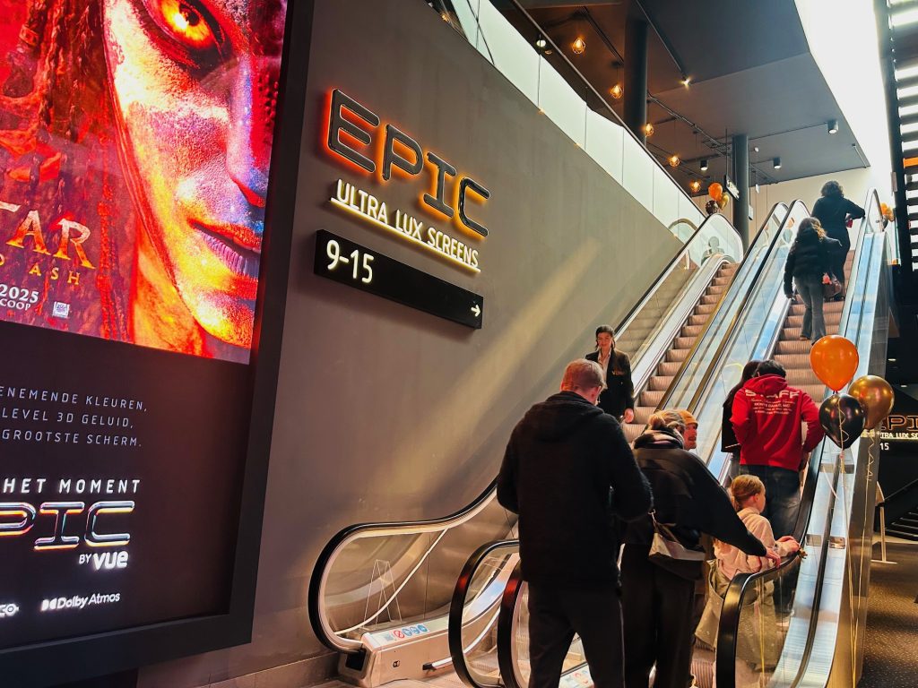 In de grootste zaal kunnen ruim 200 bezoekers kijken naar een scherm van 17 meter. Overal zijn zitjes, boven is een bar met cocktails. Tegen een toeslag kun je je nestelen op stoelen die ‘ultra lux’ zijn: brede stoelen met oranje kussentjes, verstelbare rug- en voetsteunen en extra beenruimte. Door een ingebouwde wijnkoeler zijn gekoelde drankjes binnen handbereik. In een kastje kun je je tas of paraplu stallen.