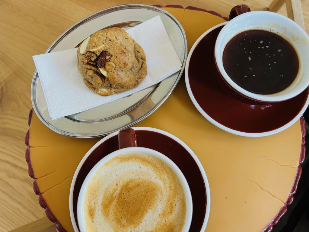De een zwaait enthousiast naar een passerende buurvrouw met wild wapperende haren, de ander straalt als de koffieleverancier van Stooker langskomt en uitleg bij de broodjes wil. Als ik een van de koeken bestel, vijg en walnoot (à 4,20 euro), krijg ik complimenten voor mijn ‘uitstekende’ smaak. “Ga rustig zitten. De cappuccino komt eraan. Betalen kan later.”