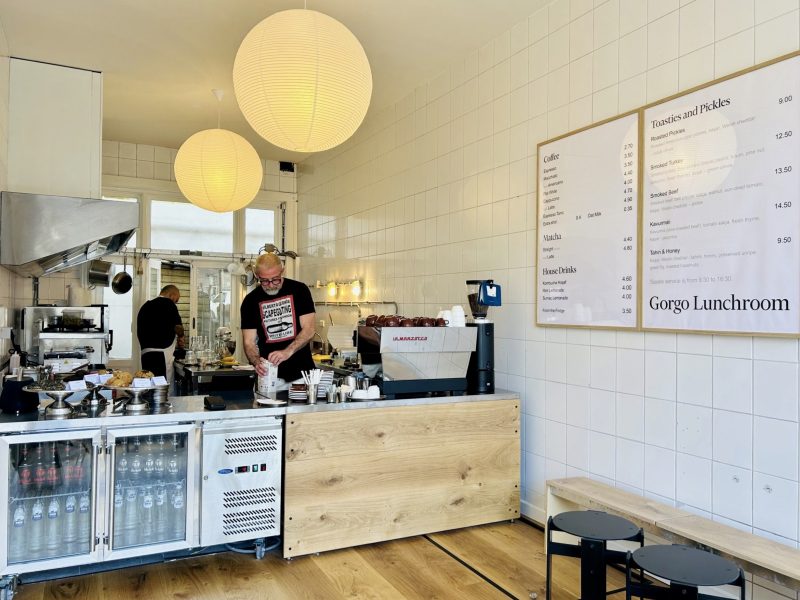 Buurtbewoners met honden drinken hun coffee to go op het bankje voor de zaak. Een oudere voorbijganger komt binnen. Of hij even naar de wc mag. Hij moet zo nodig. De eigenaren van Gorgo geven hem ruim baan.