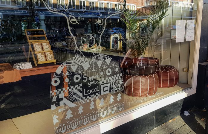 In een ander leegstaand pand zit een andere pop-up met de naam Fraaimakers en iets verderop schildert Baukje Duin onder het motto Kop en Pui portretten van ondernemers uit de buurt.