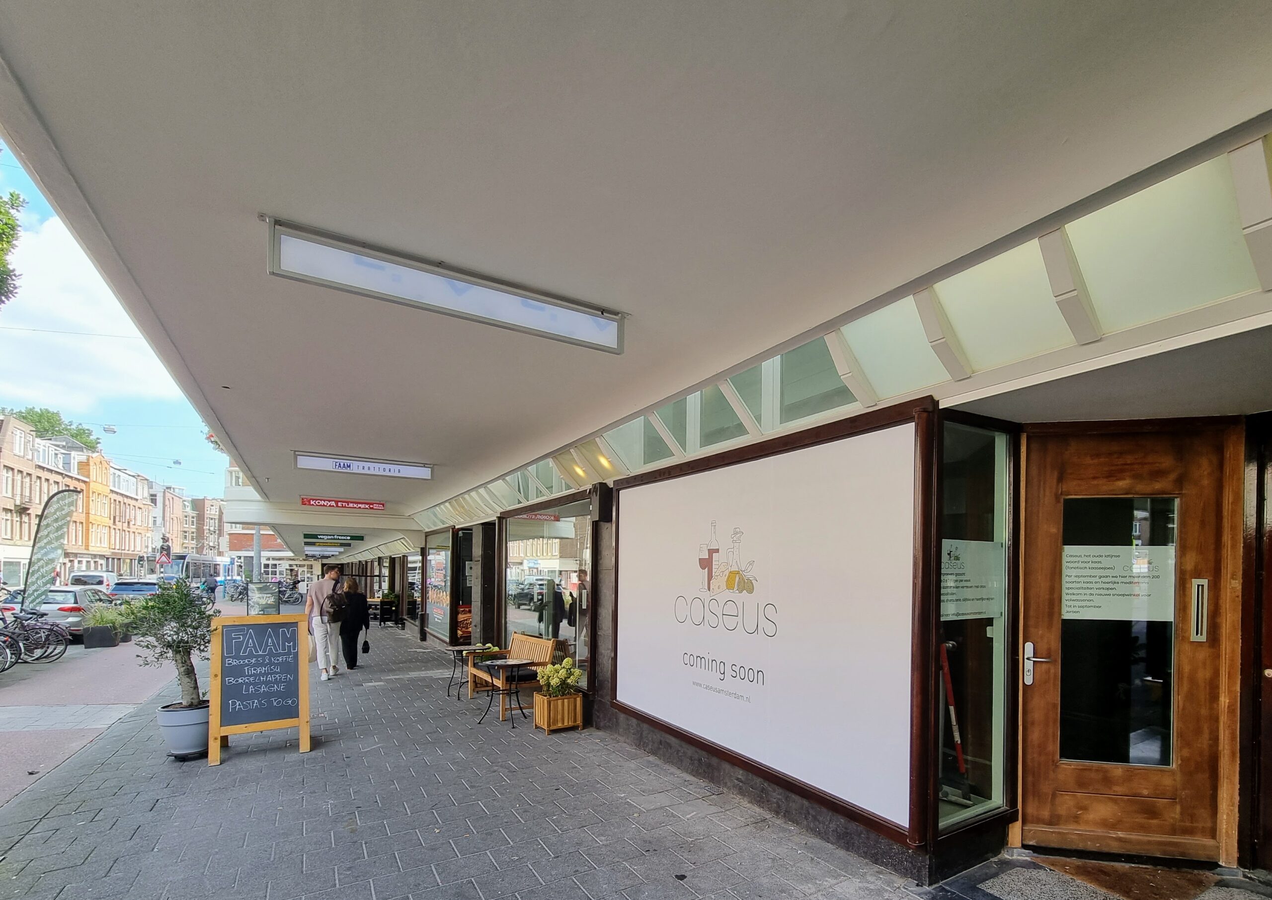 In september opent hier Caseus. De naam is ontleend aan het Latijn, aldus het bord aan de deur van het nog te verbouwen pand. Jeroen de Waal belooft vanaf september 200 soorten kaas en ‘heerlijke mediterrane specialiteiten’ te gaan verkopen in een ‘snoepwinkel voor volwassenen’. Tot vandaag was hij bedrijfsleider bij Fromagerie l’ amuse aan het Olympiaplein in Zuid.