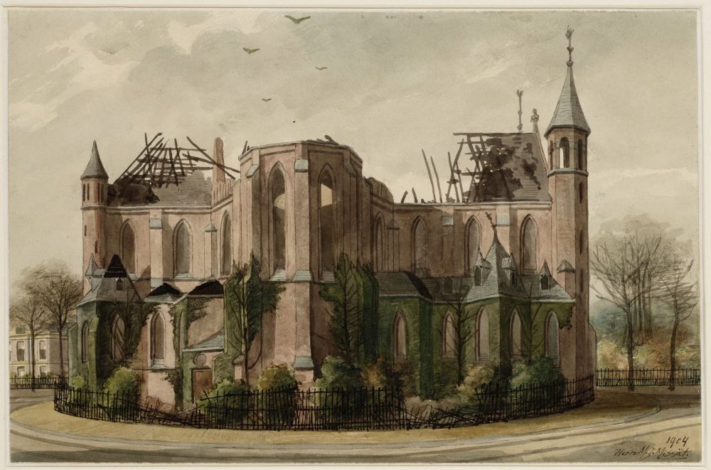 De door architect Pierre Cuypers ontworpen kerk in Oud-West raakte in de oudejaarsnacht zwaar beschadigd door brand. De oorzaak is nog altijd onbekend, maar buurtbewoners denken dat vuurwerk een rol speelde.