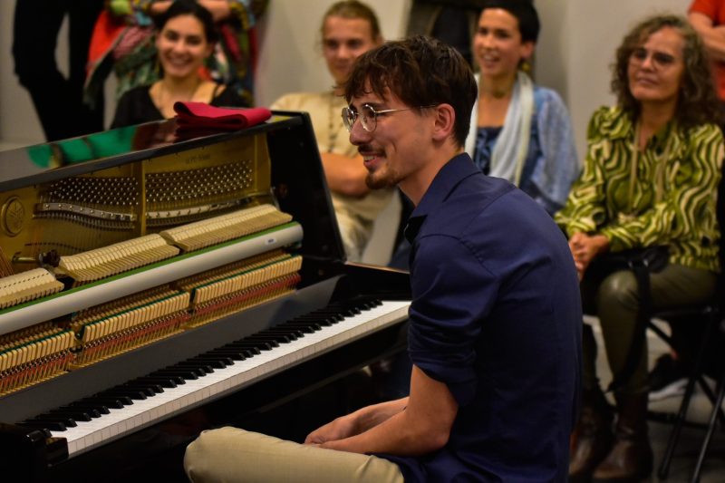 Loop je rond 13.00 uur via de Tollensstraat binnen, dan baad je vrijwel direct in live pianomuziek. Tomás Mauro kruipt twee keer per dag, behalve op maandag, achter de piano: van 13.00 tot 14.00 uur en van 19.30 tot 20.30 uur. Hij doet dit bij De Galerie, Hannie Dankbaarpassage 25, in De Hallen. Dit pianospel is onderdeel van zijn expositie ‘Connections: a postcard in exchange for your name’ die nog tot en met woensdag 8 oktober is te zien.