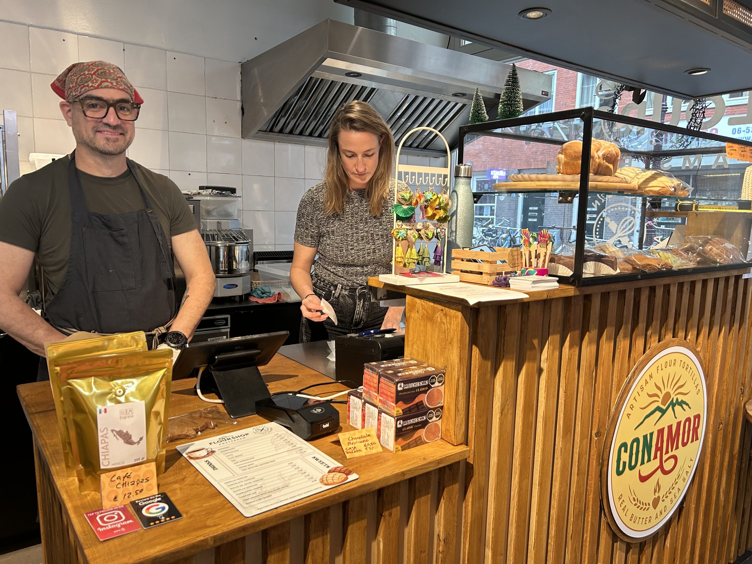 Jaime en Yola vonden elkaar in hun missie om Amsterdammers iets te bieden wat ze nog niet kenden, zoals conchas, zachte broodjes in de vorm van een schelp met een koeklaag erop (vanaf 3,90 euro). Ze zijn er in de smaken vanille, dulce de leche (karamelpasta) en chocolade.