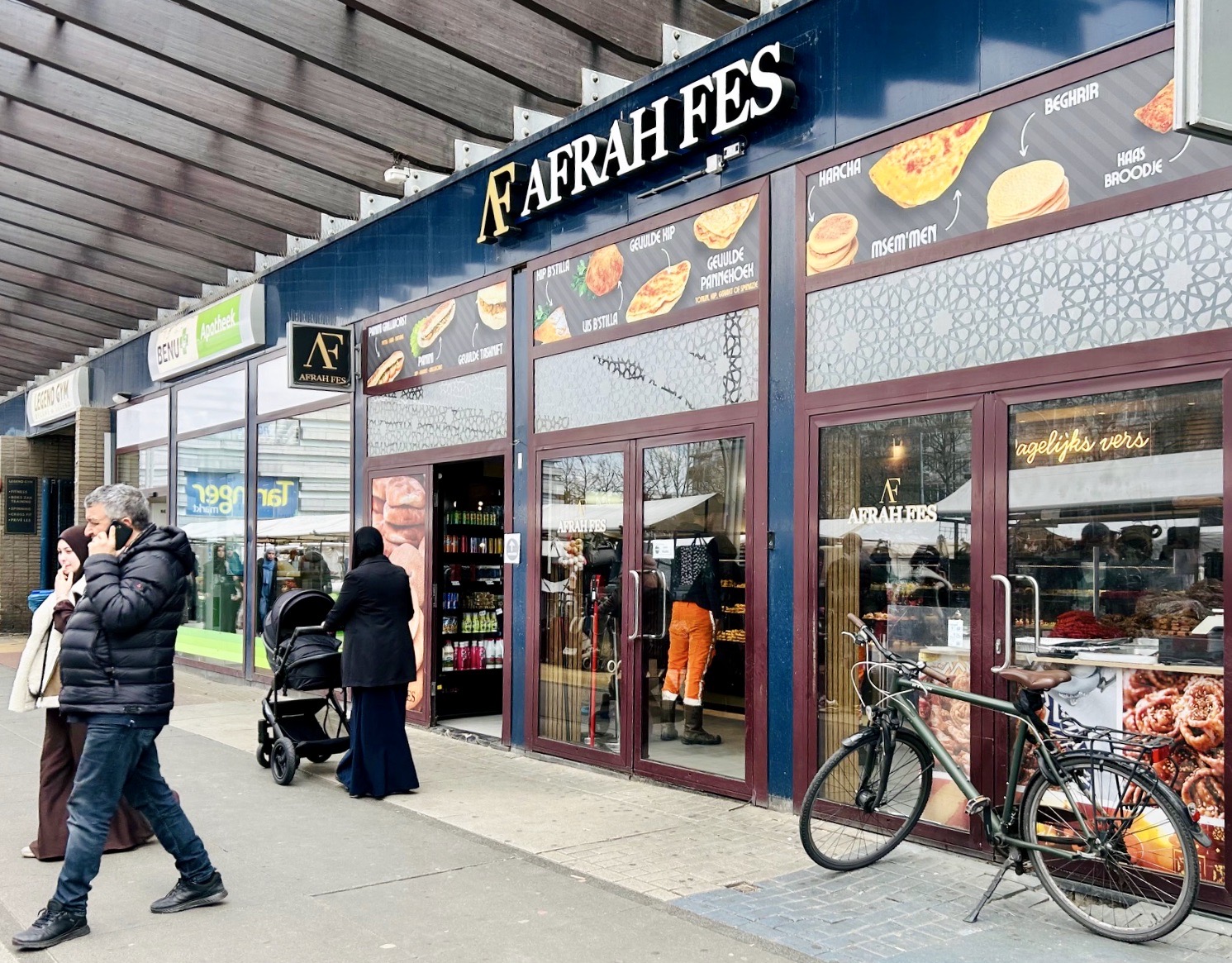 Dat ik vandaag in Nieuw-West ben en naar binnen ga bij brood- en banketbakkerij Afrah Fes, Plein ’40-’45 nummer 7, komt door berichten op de Facebook-pagina RestoTips Amsterdam. Een van de leden van deze community was benieuwd waar zij de beste bastilla van Amsterdam kon kopen. Aangezien ik verzot ben op dit hartige en tegelijkertijd zoete Marokkaans pasteitje met kip of vis was ik een en al aandacht. Ik kwam opvallend vaak de naam Afrah Fes tegen. De bastilla van deze bakkerij in Nieuw-West zou ‘gruwelijk lekker’ zijn, zowel in de kip- als de visvariant.