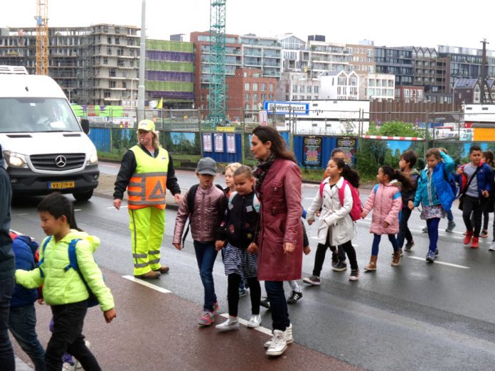 Vierhonderd kinderen loodst ze dagelijks veilig naar de overkant van de Spaarndammerdijk. Klaar-over Nicole is onlangs door ouders beloond met bloemen voor al haar inspanningen om de kinderen veilig naar de basisscholen en crèche in De Houthaven en weer thuis te krijgen.
