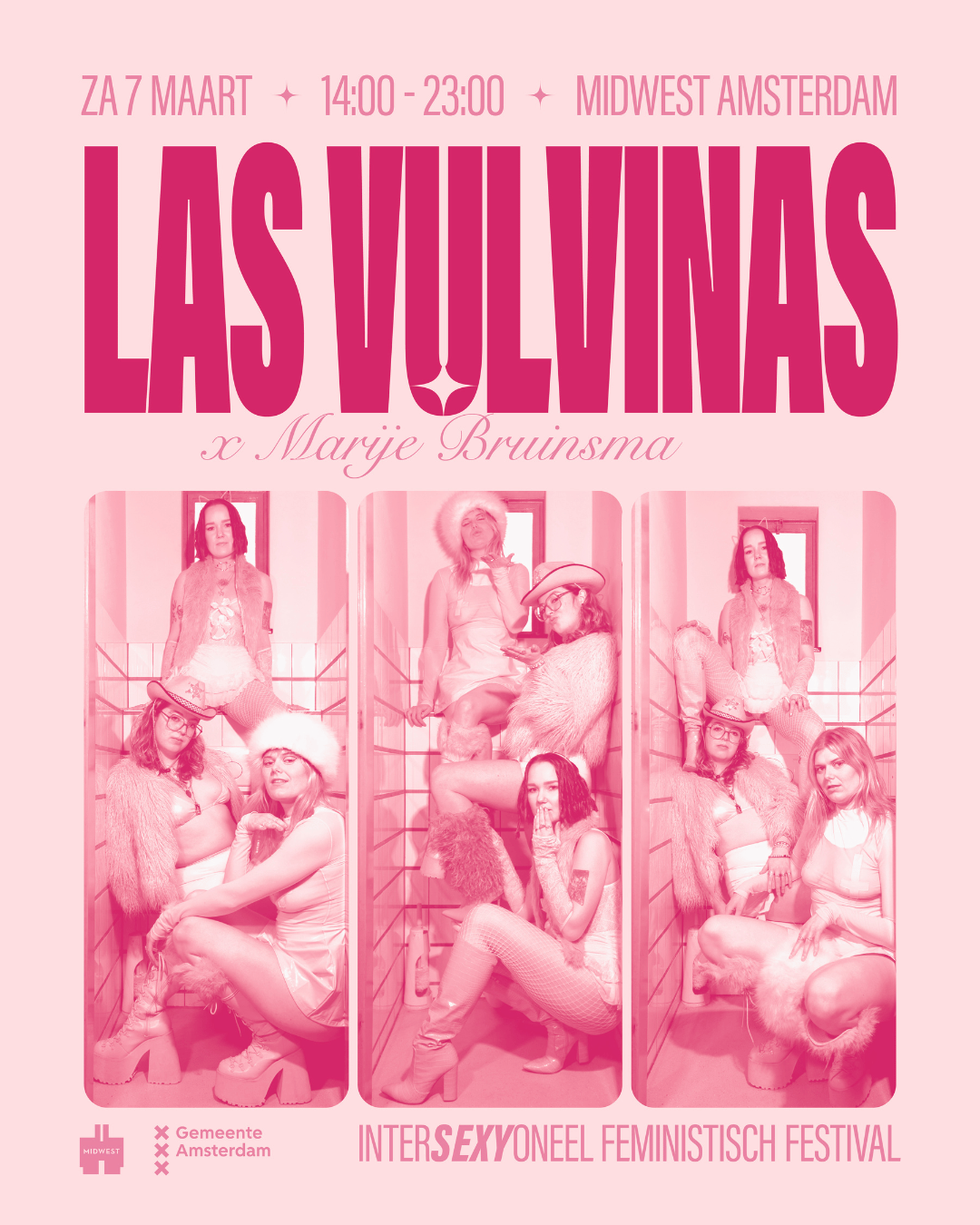 Tienduizenden mensen lopen op Internationale Vrouwendag (8 maart) weer mee met de politieke Feminist March, van de Dam tot het Museumplein. Om alvast op te warmen voor deze wandeling én om te laten zien dat activisme ook entertainment kan zijn, is er op zaterdag 7 maart in MidWest het ‘Las Vulvinas x Marije Bruinsma Festival’.