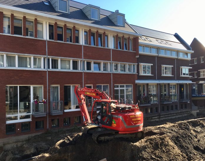 In de wijk Houthaven zijn aannemers begonnen met het graven van grachten. Tussen het Wiborgeiland en Stettineiland maken graafmachines een eerste geul die later onder water wordt gezet.