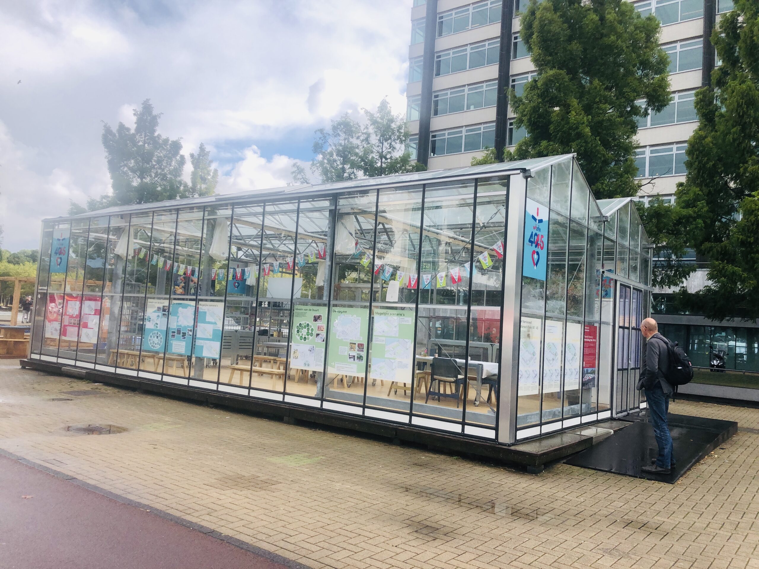 Op 28 september opende stadsdeelbestuurder Erik Bobeldijk de expositie ‘Scenario’s Herinrichting Plein ’40-’45’. De scenario’s hangen achter de ramen van het Glazen Huis voor het Tuinstadhuis op het plein. Dus ook als het ‘museum’ dicht is, kun je een blik op de toekomst werpen.