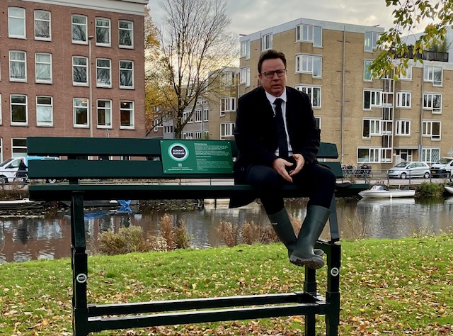 Deurloo was woensdag aanwezig bij de onthulling van het Klimaatbankje in het Westerpark. Dit is een verhoogd parkbankje, bedoeld om aandacht te vragen voor de klimaatcrisis en een toenemend risico op overstromingen. Dat risico is reëel, zegt Deurloo tegen De Westkrant. “Ik heb niet het idee dat het besef is doorgedrongen hoe ernstig de situatie is.”