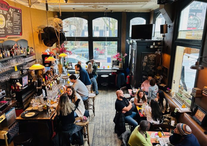 De menukaart is minstens zo up-to-date. Tosti’s of uitsmijters met ham, kaas en/of tomaat (vanaf 12 euro) staan gebroederlijk naast brood met kimchikroketten en gochujang-mayo. Om je borrel áf te maken, kun je frikadelletjes, vlammetjes of jackfruitballen laten frituren. Daarnaast kun je een blikje sardientjes La Perle de Dieux laten opentrekken of happen in Japanse dumplings met eend.