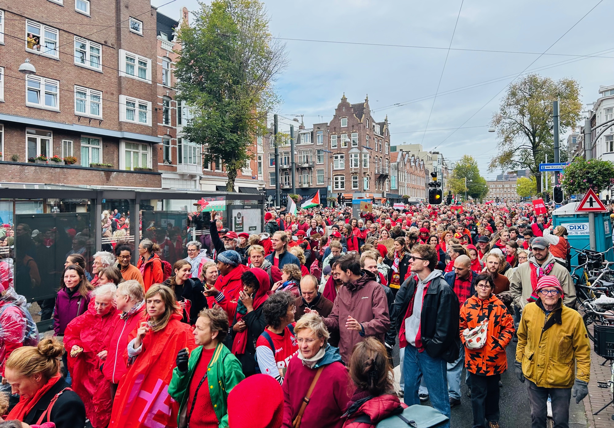 Amsterdam heeft vandaag de derde Rode Lijndemonstratie van het land. Volgens de organisatie doen 250.000 deelnemers mee aan de mars die begint en eindigt op het Museumplein en ook door West gaat. Net als bij de eerste twee protesten eisen ze ‘actie van het kabinet om de genocide in Gaza te stoppen’.