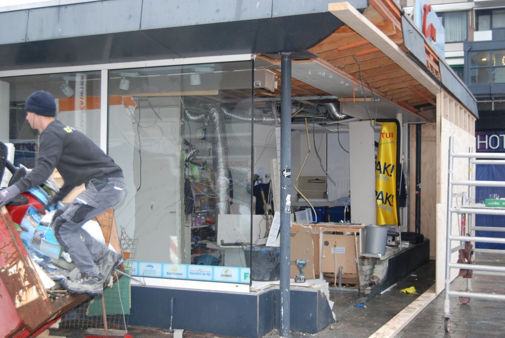 “Ik had het vanochtend eerst niet in de gaten”, vertelt een verkoopster van de nabijgelegen WE. “Een koerier gaf bij ons een pakketje af voor het reisbureau omdat ze niet open waren. Ik dacht dat ze gewoon wat later waren. Maar toen ik ernaar toeliep, zag ik dat de hele muur weg was.”