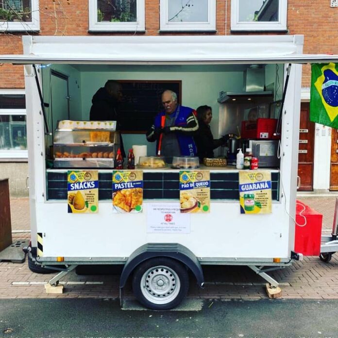 De eigenaren hadden eerder een lunchroom op de hoek van de Ten Katestraat en Wenslauerstraat. Maar sinds een paar jaar staan ze van maandag tot en met zaterdag op de Ten Katemarkt. Tot voor kort hadden ze daar ‘slechts’ een kraam, maar nu schitteren ze in hun eigen foodtruck. Ze verkopen er Braziliaanse snackklassiekers, waaronder pasteitjes, coxinhas (kegelvormige kipkroketjes) en pâo de queijo (kaasbroodjes). Desserts zijn er ook. Reken op zoetigheden met veel kokos en room (custard). Heel populair onder Braziliaanse expats, die er ook graag een blikje guaraná scoren.