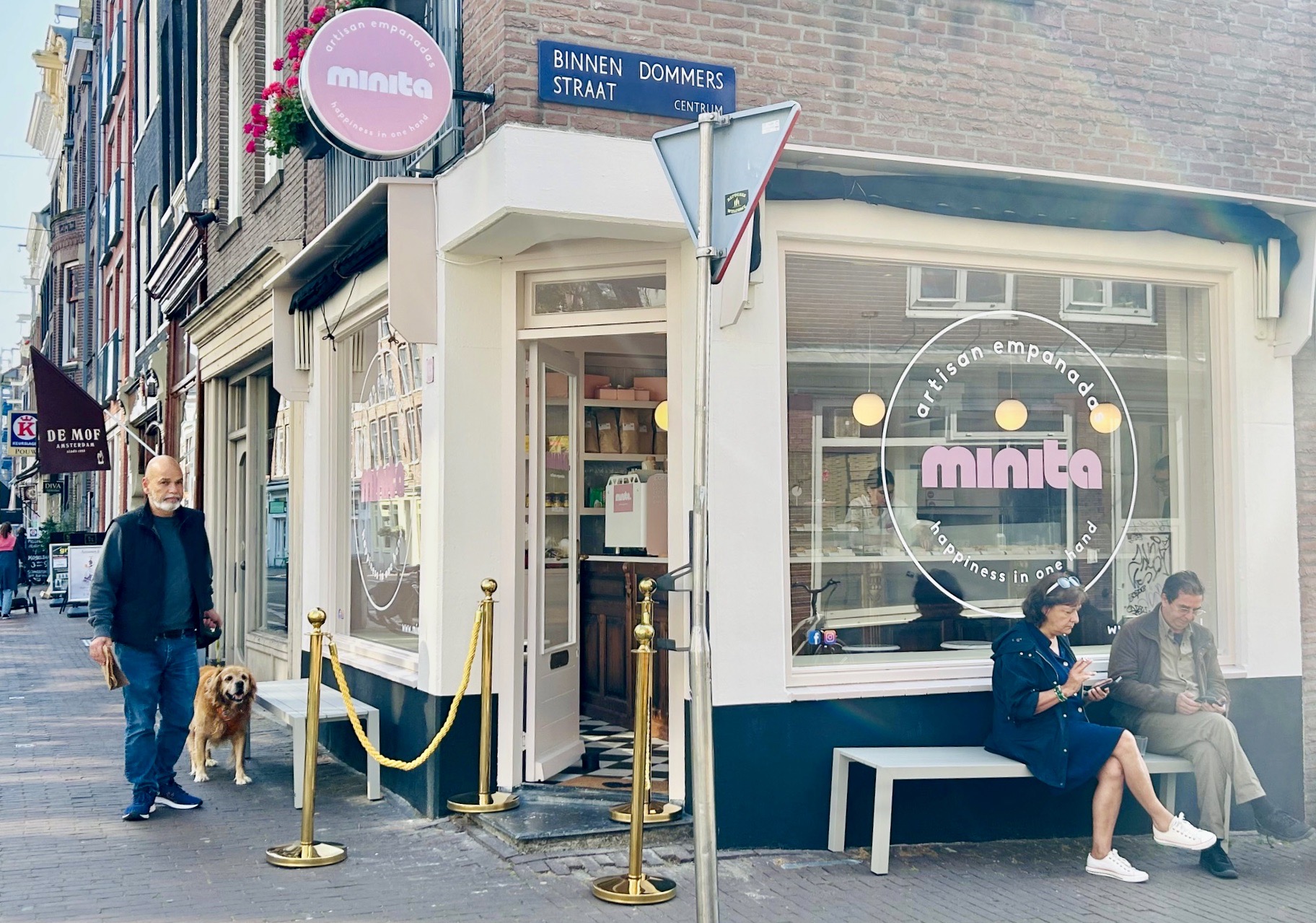 Voor de nieuwste ster aan het empanadafirmanent moet je de grens van Westerpark over en het centrum binnenstappen. Op 14 september is Minita geland op de Haarlemmerdijk 111. De ‘happiness in one hand’ die je er kunt kopen, zijn klassiek gevuld met gehakt, kip of ham-kaas. Maar er zit ook een exotische versie tussen: de chicken masala met geroosterde kip, paprika, koriander, curry en dille. De eigenaren zijn Argentijns en verkopen behalve hartige happen ook zoetigheden als alfajores (maizenakoekjes) en dulce de leche (karamelpasta). Net als Baires Empanadas en La Reinita, trouwens.