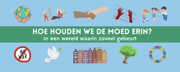 Hoe houd jij, houden we met elkaar de moed erin? Welke ervaringen met in gesprek blijven met andersdenkenden, met respectvol tegenspreken en met zoeken naar verbindende waarden, kunnen we delen? Wat doe jij, wat kunnen we samen doen om verbonden te blijven met onze buurt, met Nederland, met de wereld?