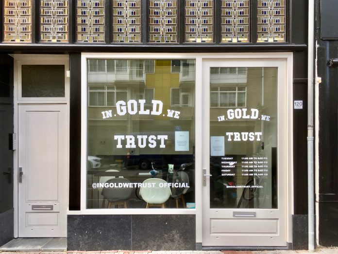 Kledingmerk In Gold We Trust is neergestreken in de Kinkerstraat. Op donderdag is de feestelijke opening van deze eerste eigen winkel van het Amsterdamse streetwear merk.
