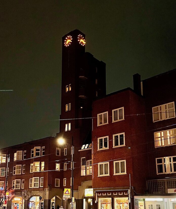 De klok op de toren van het Mercatorplein is gerenoveerd. De oude, deels kapotte verlichting is vervangen door zuinige led-lampen, zo meldt stadsdeel West. Voor de werkzaamheden is een hoogwerker ingezet.