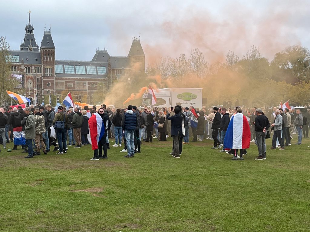 Een vrouw vertelde dat ze eerder die dag bij een tegendemonstratie op het Jonas Daniel Meijerplein aanwezig was. Onder het motto ‘Laat je horen tegen extreem-rechts en fascistisch geweld!’ waren mensen samengekomen als reactie op het anti-immigratieprotest op het Museumplein. Volgens haar was de sfeer bij dat protest ‘gemoedelijker’ en waren er ‘meer mensen’.