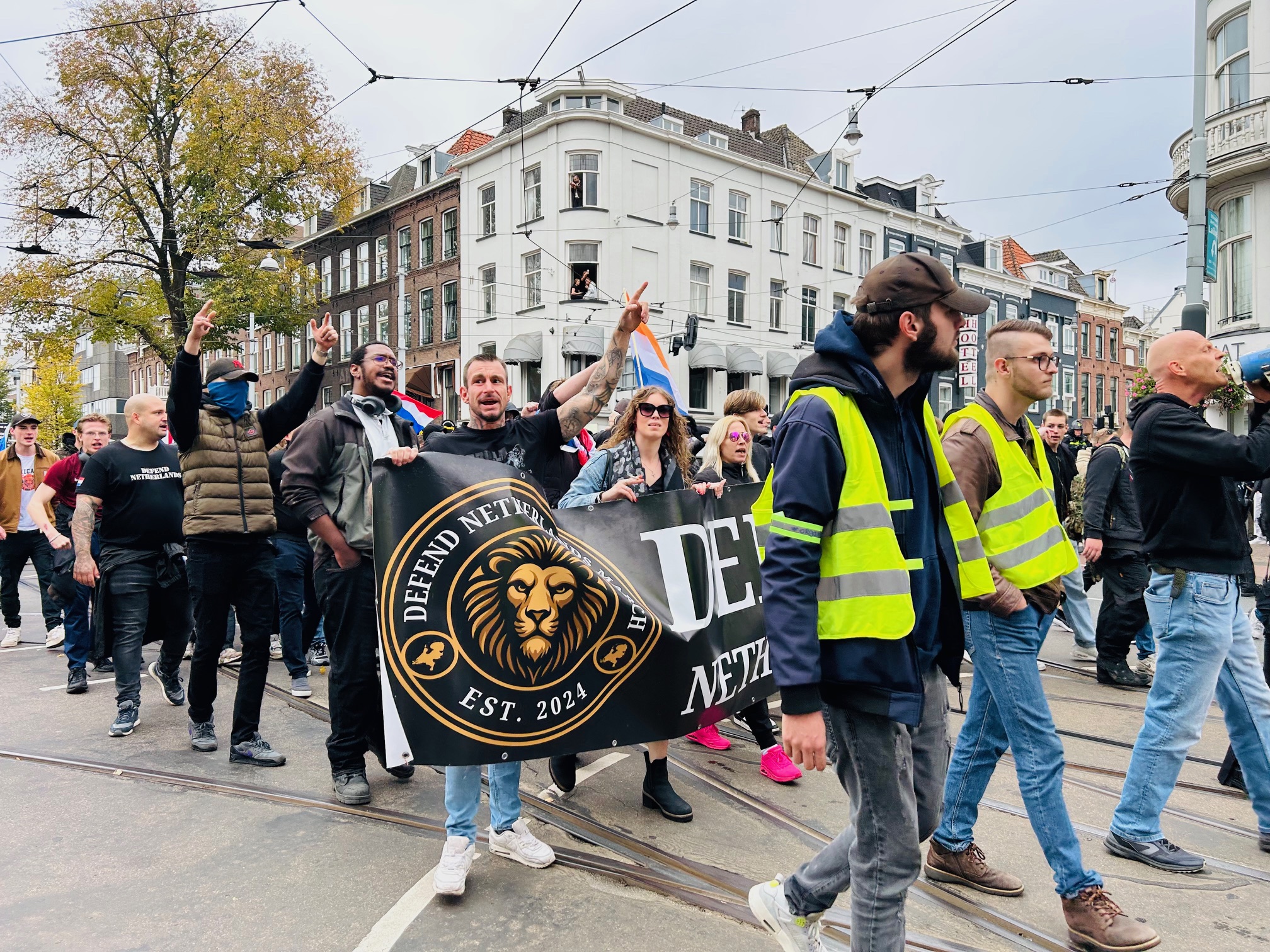 Vanaf het Museumplein liep de stoet onder meer over de Overtoom. “AZC weg ermee”, “Nederland gaat kapot”, “Waar is Antifa dan?”, scandeerden ze. Ook zwaaiden ze met Nederlandse, Friese vlaggen en VOC-vlaggen. Op een spandoek stond het verzoek om “graag vóór 29 oktober met een streng migratiebeleid te komen.”