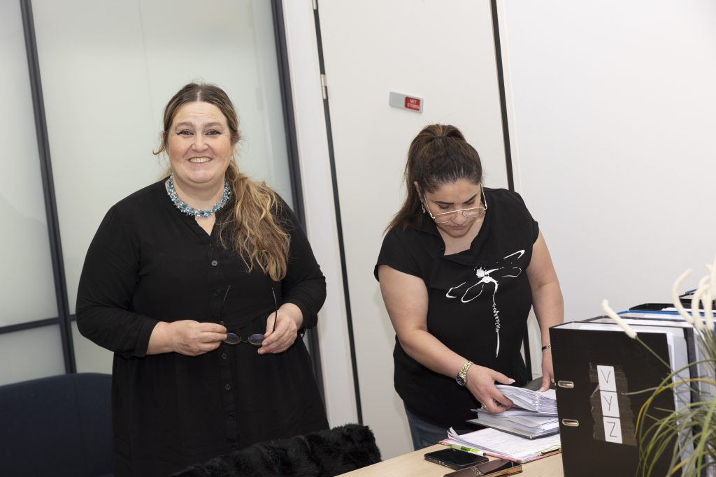In de drukke spreekkamer, waar twee andere vrijwilligers en een tolk de bezoekers ontvangen, kent iedereen Bayar. Ze spreekt Turks en Nederlands door elkaar heen en lacht veel. Terwijl ze met instanties aan het bellen is, mengt ze zich in alle gesprekken in de kleine ruimte.