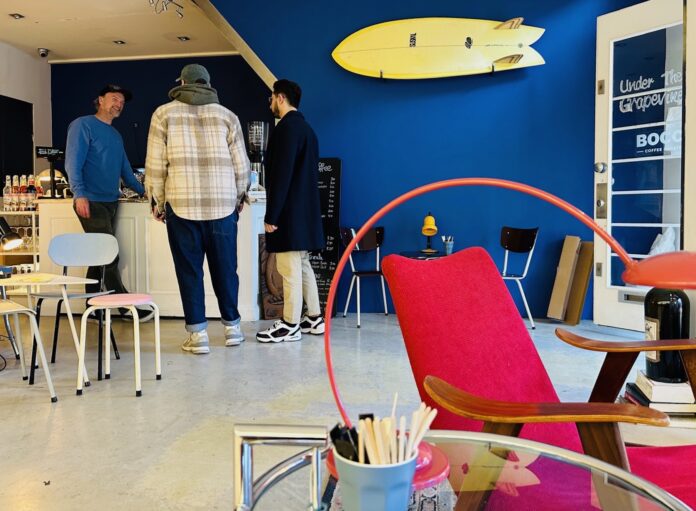 Voordat Mike besloot om zijn liefde voor wijn, koffie en surfen te combineren, stond hij geregeld achter de toonbank van Wijnhuis West. Naast zijn werk in de bancaire sector hielp hij MKB-ondernemers om hun bedrijven weer op de rit te krijgen, zoals Wijnhuis West. Toen de eigenaren ermee wilden stoppen, besloot hij de zaak over te nemen en te transformeren tot Under The Grapevine. Wat mij betreft is dit het coolste kindje van de klas.