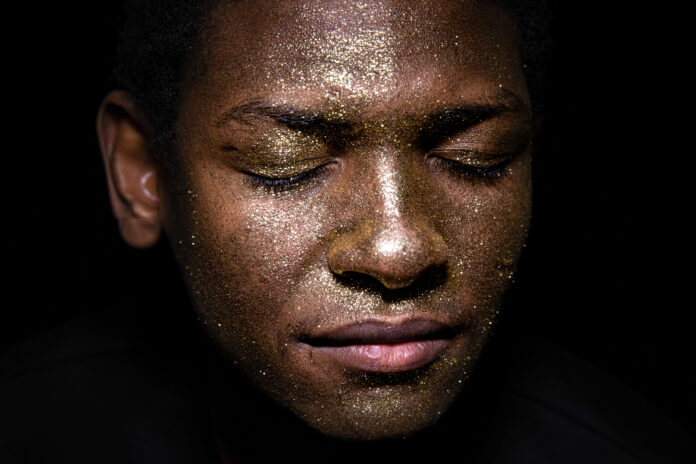 A New Beginning fotoserie onderdeel van project Shadow Game. Op de foto: Abdulaal (22) wil acteur worden. Hij houdt van aandacht, in de spotlights staan. Als hij aan de toekomst denkt, aan acteren en beroemd worden, dan denkt hij aan de kleuren goud en rood. Hij kwam op zeventienjarige leeftijd vanuit Soedan alleen naar Nederland. Onderweg leerde hij de volksliederen van twaalf landen uit zijn hoofd. “Dat deed ik om contact te maken. Mensen vinden het sympathiek als je iets van hun land weet.” Foto: Cigdem Yuksel. Tekst: Eefje Blankevoort.