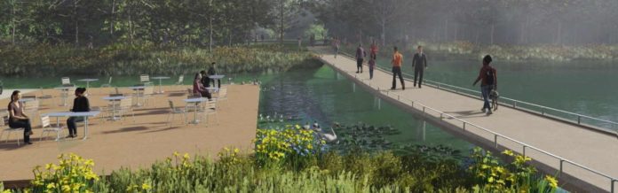 Een nieuwe voetgangersbrug gaat het Rembrandtpark verbinden met het Ringparkgebouw aan de Nachtwachtlaan. Aan beide kanten van het water is een stevige ondergrond gemaakt voor de brug, meldt stadsdeel Nieuw-West. Ook zijn palen geplaatst waarop het brugdek komt te liggen. De brug moet eind januari volgend jaar klaar zijn.