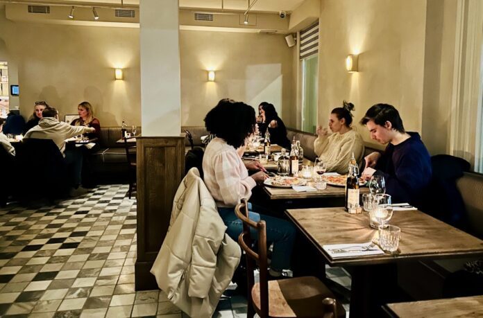 Wil je op maandag uit eten gaan, dan moet je langer zoeken dan vóór de coronacrisis. Steeds meer restaurants zijn dan dicht, zo ook in de Staatsliedenbuurt. Pazzi is een van de schaarse zaken in die wijk die op maandag wél open is. Op 30 december ging ik er zonder reservering heen en was het volle bak. Soepel leidde Andrea Milillo ons door de sfeervol verlichte ruimte naar onze tafel. Hij bleek een van de vier eigenaren van Pazzi te zijn. Behalve bij deze Amsterdamse keten van Italiaanse restaurants is hij ook betrokken bij Linguine. Deze trattoria zit al in De Pijp en Jordaan en zal binnenkort ook in West een vestiging openen.