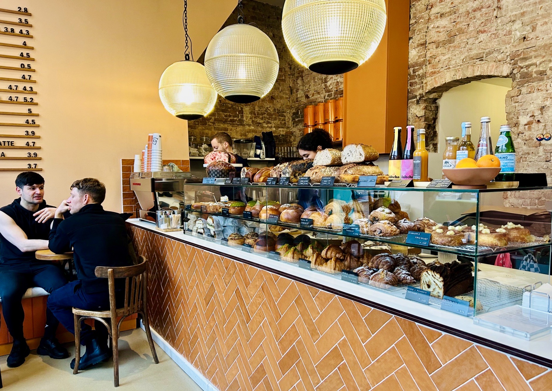 Toen ik voor het eerst in de zoete broodjes van deze bakkerswinkel in Oud-West hapte, begon ik spontaan te glimlachen. Ik merkte dat het witte brood licht als een veertje leek, maar dat het vulde als een dolle. Best logisch als je weet dat brioches aardig wat boter, suiker en eieren bevatten. Behalve brioche met gesuikerde amandelen (pralines) at ik toen ook een stuk van een brioche met chocola en geroosterde pinda’s. De pinda heeft geen overheersende smaak, maar is zeker op de achtergrond aanwezig. Lekker!