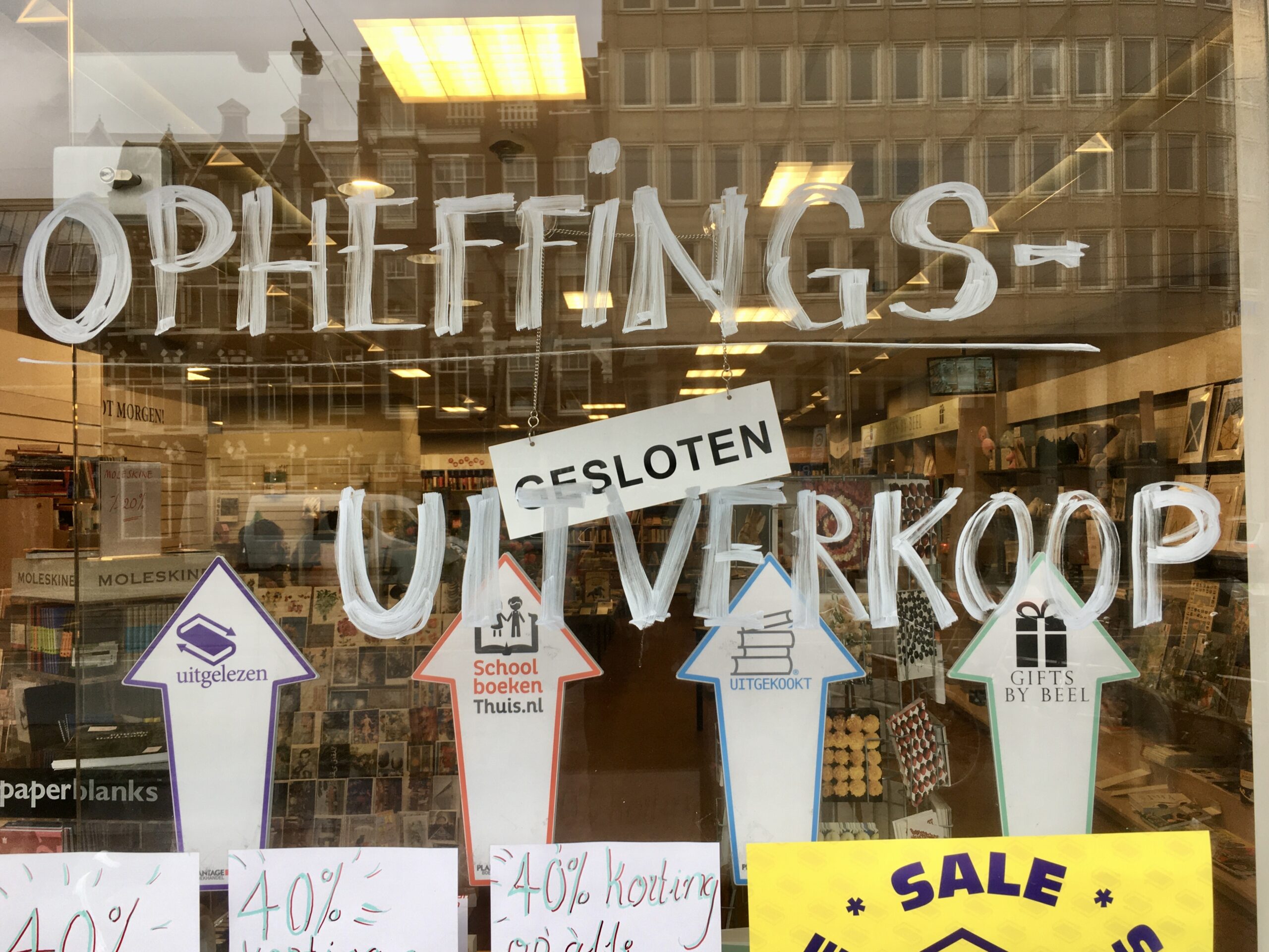 De opheffingsuitverkoop is begonnen. Plantage Boekhandel Overtoom gaat eind deze maand sluiten. De eigenaar gaat met pensioen.