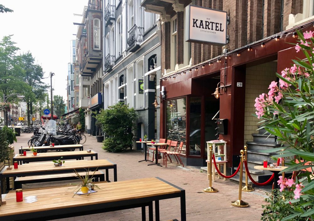 Bij ‘kartel’ denk ik direct aan organisaties waarbij criminelen met elkaar samenwerken om wereldwijd drugs te verhandelen. Wat natuurlijk meteen mijn zwak voor Netflix-series als Narcos en Queen of the South verraadt. Maar bij Bar Kartel, de nieuwste zaak op de Overtoom, draait het om iets totaal anders dan cocaïne. Matthijs van Stapele en Percy Kainama hebben zich bij hun concept namelijk laten inspireren door foodtrucks op festivals – een soort foodkartels, zeg maar – en hebben deze outdoor experience naar binnen gehaald.