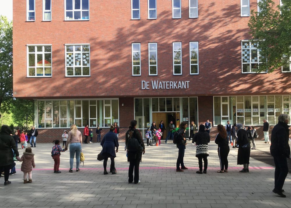 Haastende ouders met kinderen op de fiets, of aan de hand. Ongeduld bij stoplichten. Het was weer een vertrouwd beeld maandagochtend in West. Voor het eerst waren de basisscholen open, zoals De Waterkant aan het Bilderdijkpark (foto). ‘Houden jullie wel 1,5 meter afstand?’, vraagt een van de juffen op het schoolplein. Pionnen en strepen geven aan waar de leerlingen moeten staan, voordat ze naar binnen gaan.