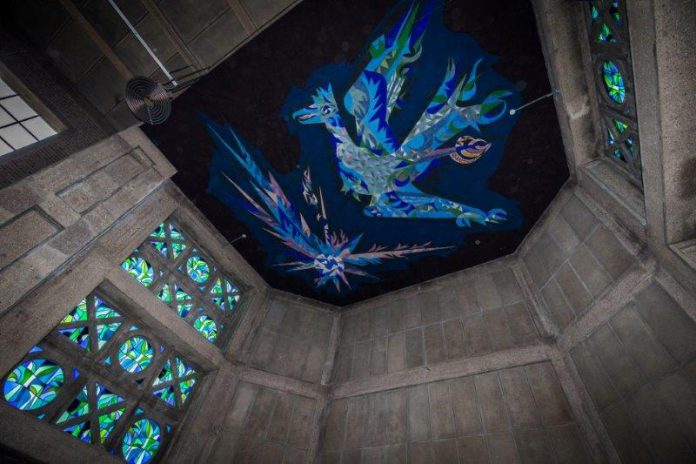 De restauratie is klaar, nu is de exploitant bezig met inrichten van het speelparadijs. Voor de restauratie zijn waar mogelijk de glas-in-loodramen en het cassetteplafond hersteld. Blikvanger is een schildering van een phoenix, boven het voormalige altaar van de kerk.