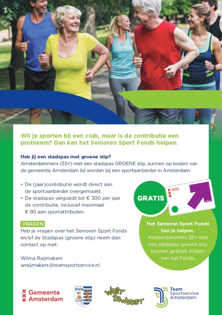 Ben je in bezit van een stadspas met groene stip? Naast de kennismakingslessen lanceren we deze dag de Senioren Sport Pas. Hiermee krijg je extra korting bij verschillende sportaanbieders.