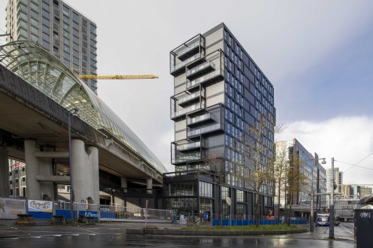 De bouwlocatie pal naast en onder het spoor maakte de bouw volgens Lieven de Key bijzonder complex en uitdagend. Het gebouw is onder de Hemboog door verbonden met een hogere woontoren met 239 huurappartementen (vrije sector en middenhuur) die later wordt opgeleverd. Tussen de torens komt een gedeelde groene oase, zo stelt Lieven de Key.