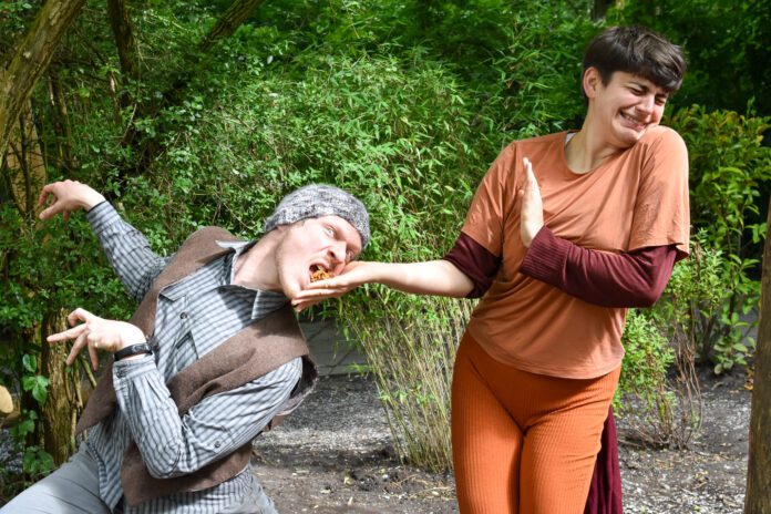 In de voorstelling worden forse hoeveelheden plastic begraven, verdronken, verstuurd, tot sieraden en kunst verheven. En dat alles terloops, er zijn tenslotte belangrijker zaken voor de dieren in Boswild.