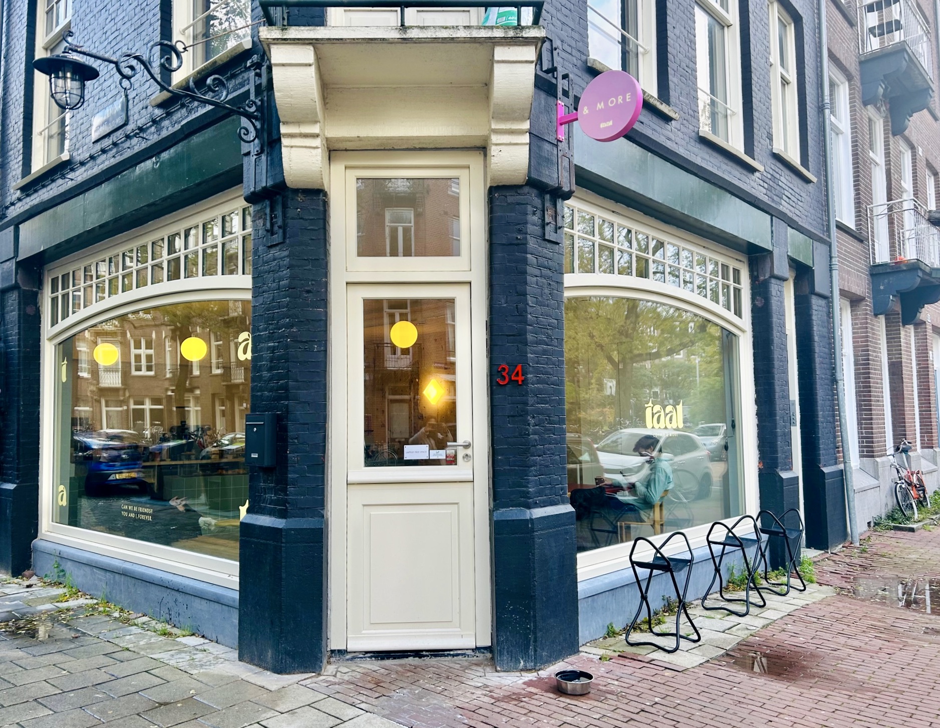 De nieuwste koffiezaak van Oud-West zit sinds half september tussen de Overtoom en de Wilhelminastraat, in een hoekpand aan het J.J. Cremerplein 34. Ik hoor je denken: wéér koffie? Je hebt een punt. In ons stadsdeel klotst de koffie tegen de plinten; koffie is het zwarte goud. Om op te vallen tussen al die koffiestekken, moet je als nieuwkomer iets doen om je te onderscheiden. Taal zet daarvoor de blueberry lavender latte (5,50 euro) in. Deze bloemige koffie verkeerd is hartstikke hot op sociale media. Maar ik had ‘m tot vandaag nog nooit besteld.
