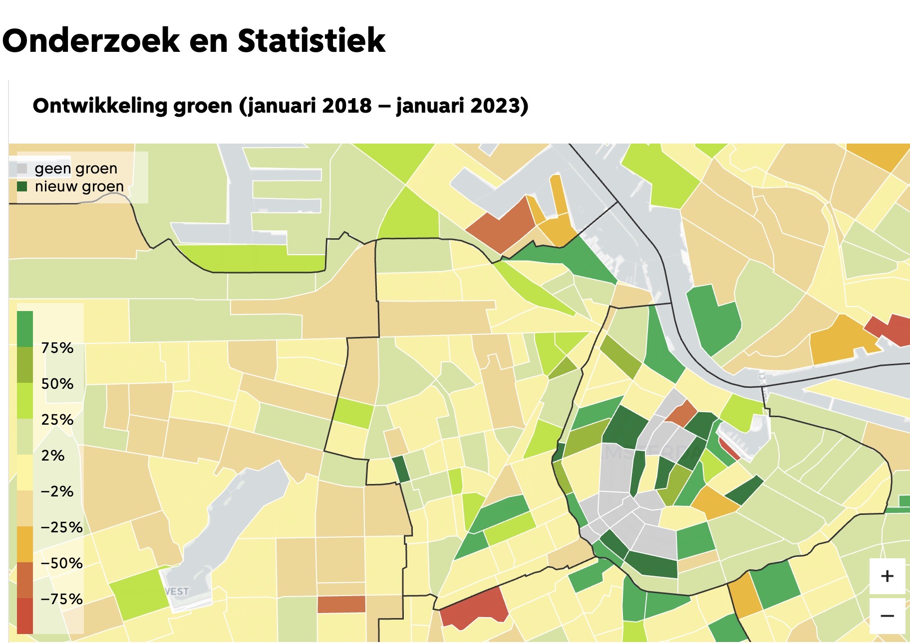 De monitor laat zien dat bestaande buurten -zoals West en Oost- groener zijn geworden. De afname gemiddeld in heel Amsterdam komt door woningbouw op landbouwgrond aan de rand van de stad, onder meer in Noord.