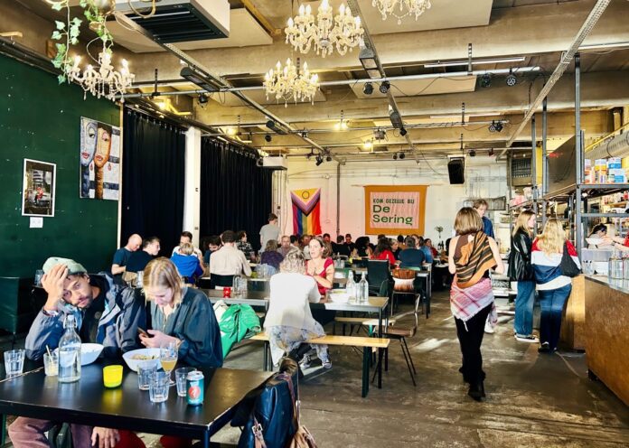 Het hart van De Sering is de Volkskeuken. Een ‘concept’ waar ik zwaar van gecharmeerd ben. In 2022 schreven we al dat de initiatiefnemers één keer per week voor 2,50 euro een maaltijd gingen aanbieden. “Als iemand goedkoper kan eten bij ons dan wanneer ze zelf thuis koken, blijft er tijd over om andere dingen te doen. Hier leren ze ook andere mensen kennen en kunnen ze op een andere manier participeren in de samenleving.”
